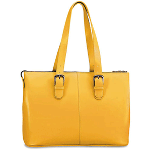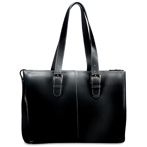Our lightweight Jack Georges zip-top laptop-compatible business tote is hand crafted from durable scratch- and stain-resistant Italian leather. A padded file/laptop compartment holds laptops with up to 15.4" screens. Easy Access Organizer, zippered inside back pocket, and plenty of room for your files, documents and accessories. Nickel hardware.