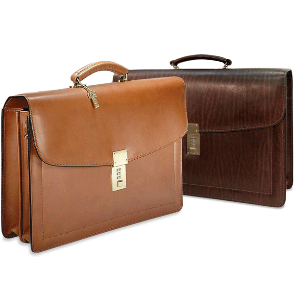 This limited-edition double-gusset flapover is hand crafted from Wickett and Craig's finest vegetable-tanned belting leather. It features our Easy Access Organizer, a zippered divider, and open outside pockets. Made with raw-edge styling and solid brass hardware, with a three-digit combination lock. Steel frame reinforcement. Shoulder strap included. Your choice of natural belting tan or saddle brown. Measures 17 1/4" x 12" x 5".