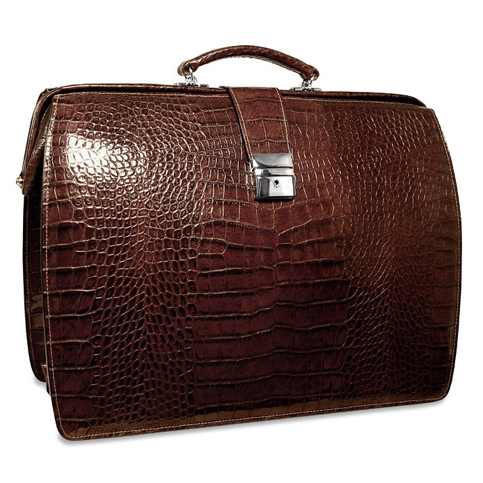 This classic briefbag is hand crafted from the finest croco-embossed Italian leather. It's lightweight, with a triple-gusset structure, and includes a full organizer, an open back pocket and an inside zippered pocket. A padded file/laptop compartment holds up to 15.4" screen laptops (the interior of the compartment measures 14" x 11" x 2"). Raw edge styling, with our signature lining and polished nickel hardware.