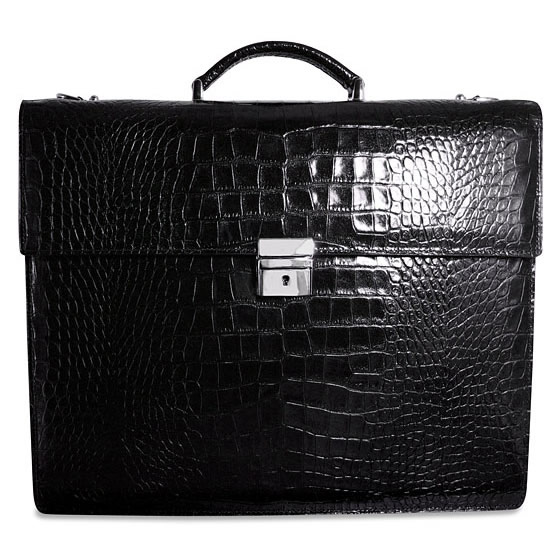 Crocodile-Grain Double Gusset Flapover Briefcase