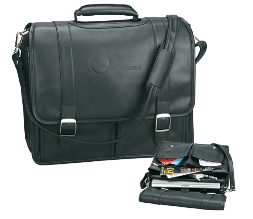 A classic brief bag with up-to-date features. Front flap with double magnetic buckle closure, brushed nickel hardware and adjustable shoulder strap. This brief also features an exterior zippered pocket, two pockets under the front flap and interior compartments for your PDA, cell phone and other gadgets. Padded laptop compartment for your laptop. 16" x 14" x 7";