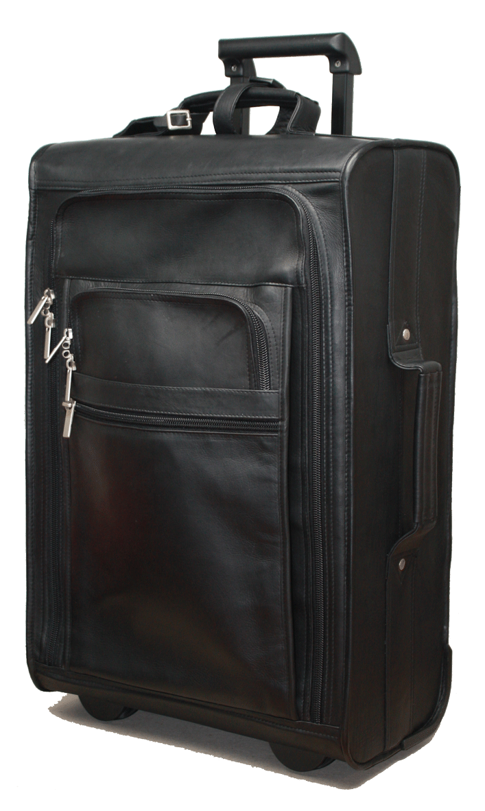 Great for weekend getaways or as a carry-on-bag. Retractable handle, wheels and stabilizer feet. Four deep exterior pockets. Large interior compartment with elastic hold-down straps. Bonus interior 16" zippered mesh pocket. 22 3/4" x 14 3/4" x 8 3/4".